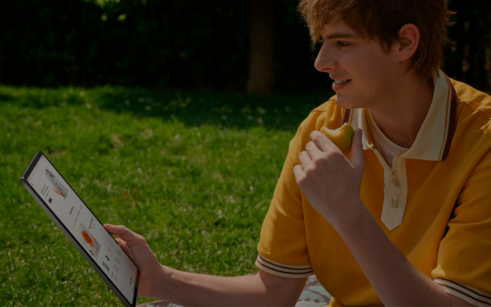 Пиковая яркость 600 нит позволяет пользоваться планшетом на улице, экран сохраняет отличную видимость картинки в солнечный день. Для дополнительного улучшения качества видео используется технология Dolby Vision. Частота обновления экрана составляет 120 Гц, работа системы и переходы ощущаются плавными. Сертификаты TUV Rheinland подтверждают, что дисплей поддерживает технологии заботы о зрении. Экран защищен от царапин стеклом Gorilla Glass 3.