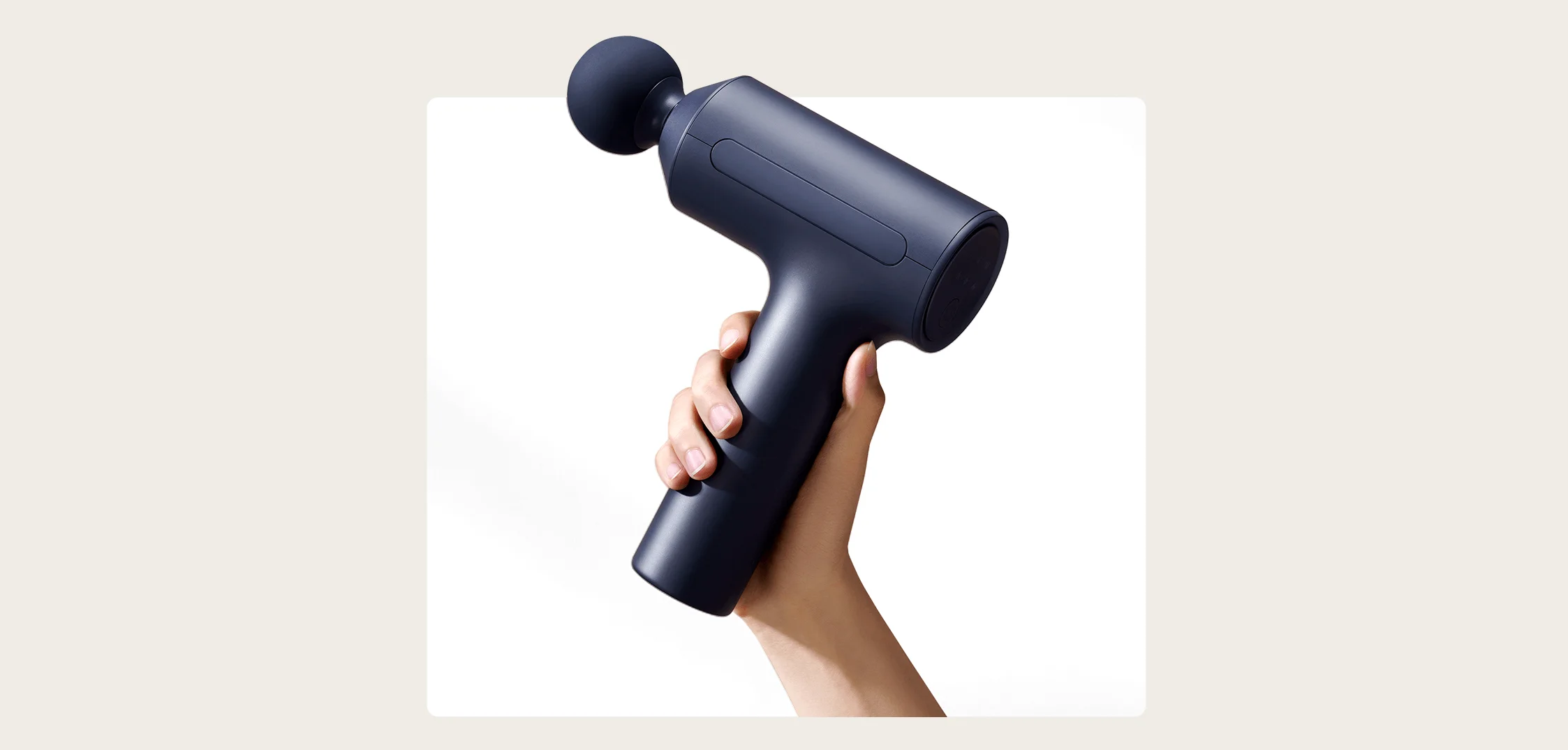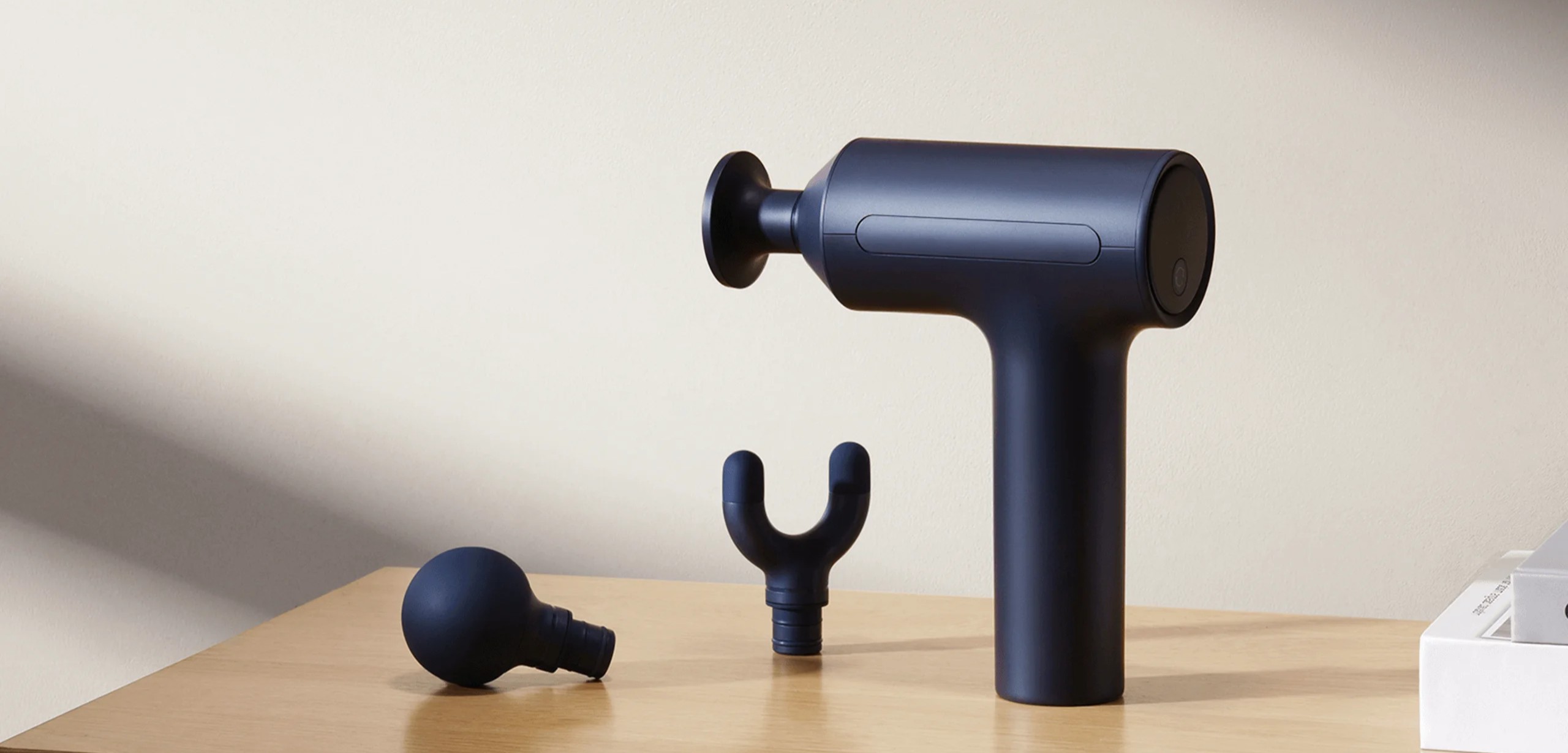 Xiaomi Massage Gun 2 выполнен в компактном и аккуратном корпусе из прочного матового пластика, который не скользит в руках и устойчив к появлению следов использования. Вес устройства составляет около 815 граммов, благодаря чему оно ощущается стабильным, но при этом остаётся удобным для длительных сеансов. Эргономичная форма корпуса помогает удерживать массажер под разными углами, не перегружая кисть.