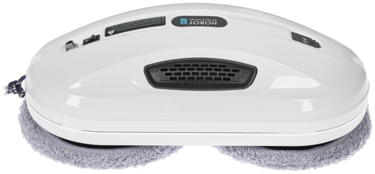 HOBOT-368 выполнен в компактном корпусе белого цвета с черными элементами. Устройство выглядит современно и аккуратно, а небольшие габариты и вес всего 0.94 кг делают его удобным для работы с окнами, зеркалами и другими стеклянными поверхностями.