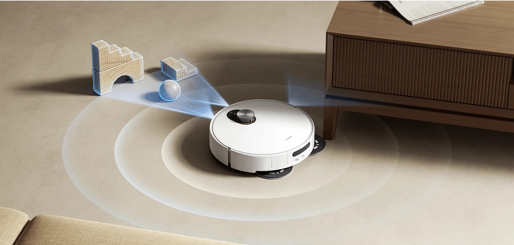 Точная навигация реализована с помощью усовершенствованного LiDAR и технологии dToF Smart Retractable Radar. Робот строит детализированные карты помещения и выбирает оптимальные маршруты уборки, избегая столкновений и застреваний. Благодаря функции S-Cross он уверенно обходит мебель и другие препятствия, а интеллектуальное построение маршрута минимизирует повторные проходы.